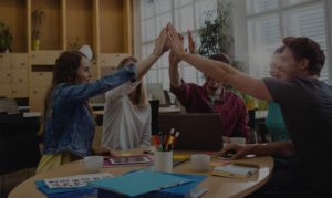 Creative business team putting hands together
