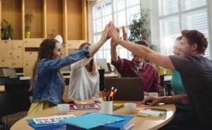 Creative business team putting hands together